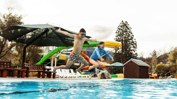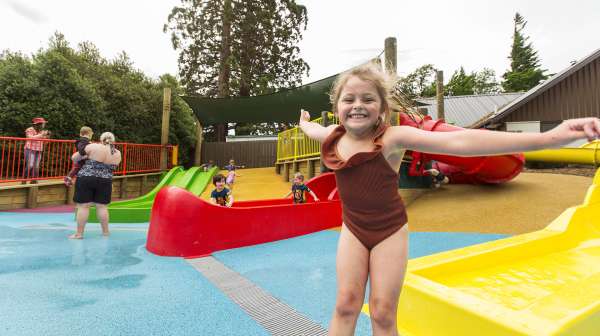 The kids will love the cave hidden behind the waterfall and the popular Tuatara slide.